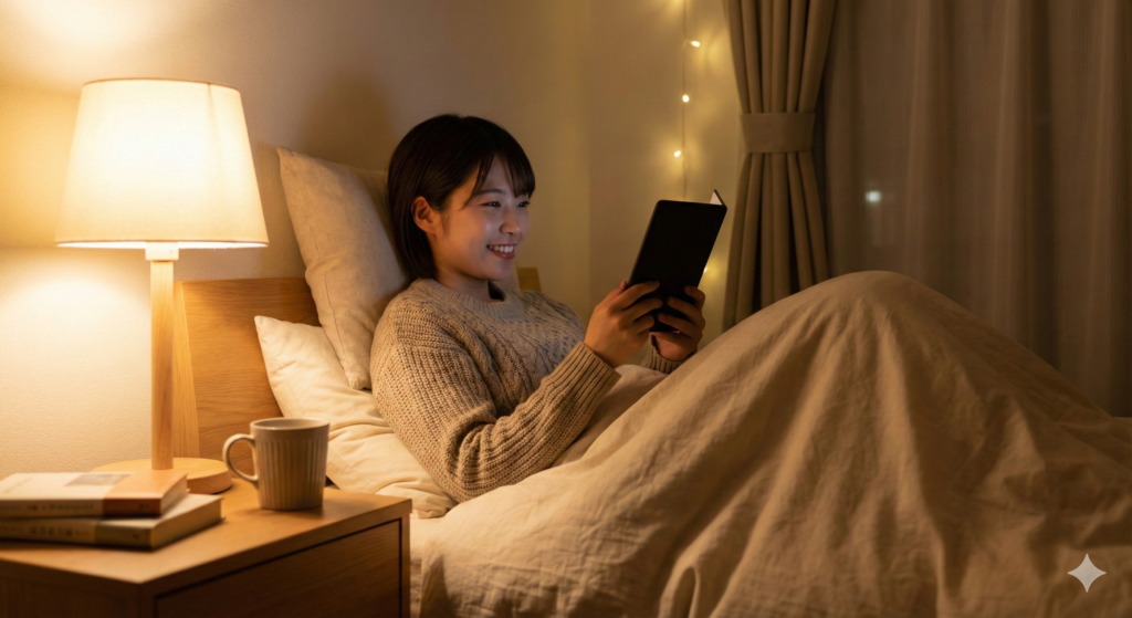 💡 結論: Kindleは、寝る前の「だらだらスマホ」を物理的に排除し、リラックスした読書時間に置き換えるための道具になる。
